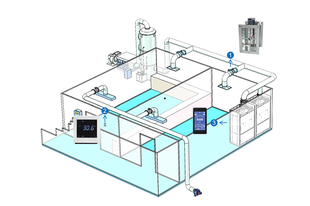 閥門自動調(diào)節(jié)開度,維持所設(shè)壓力值的穩(wěn)定??焖僬{(diào)節(jié)補(bǔ)風(fēng)、排風(fēng)變風(fēng)量風(fēng)閥的開度,達(dá)到控制房間壓差目的。">