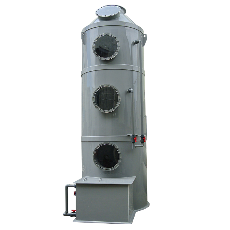 PPs阻燃噴淋塔廢氣處理原理:PPs噴淋塔處理廢氣機(jī)制為氣液逆流接觸。以酸性廢氣為例,酸性廢氣由塔底進(jìn)入,pp噴淋塔循環(huán)水泵開啟后,水箱內(nèi)堿性液體由塔頂進(jìn)入,經(jīng)過噴淋裝置(噴嘴)噴成霧狀或雨滴狀;氣液逆流,在填料層酸堿中和。凈化后氣體經(jīng)過除霧大小頭后排出。--噴淋塔的結(jié)構(gòu)組成:酸堿廢氣塔分單塔體和雙塔體以及立式噴淋塔與臥式噴淋塔。用法蘭分段連接而成。具體由貯液箱、塔體、進(jìn)風(fēng)段、噴淋層、填料層、旋流除霧層、出風(fēng)錐帽、觀檢孔等組成。
